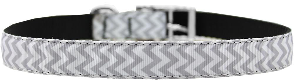 Chevrons Nylon Dog Collar with classic buckle 3-4" Grey Size 24