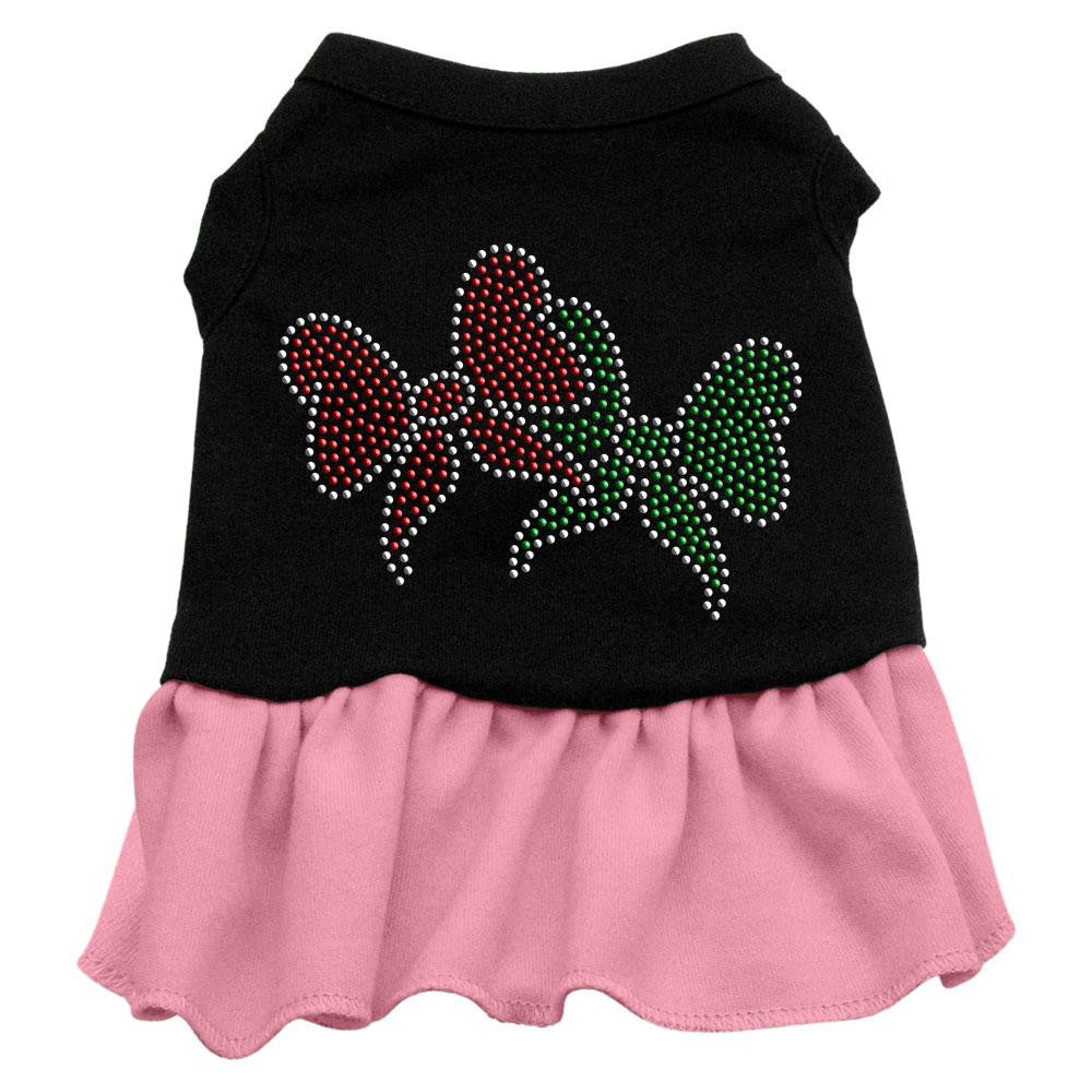 Christmas Bows Rhinestone Dress Black with Pink XXXL (20)