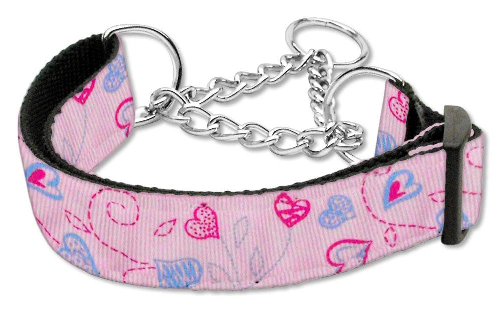Crazy Hearts Nylon Collars Martingale Light Pink Large