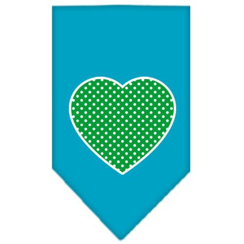 Green Swiss Dot Heart Screen Print Bandana Turquoise Large