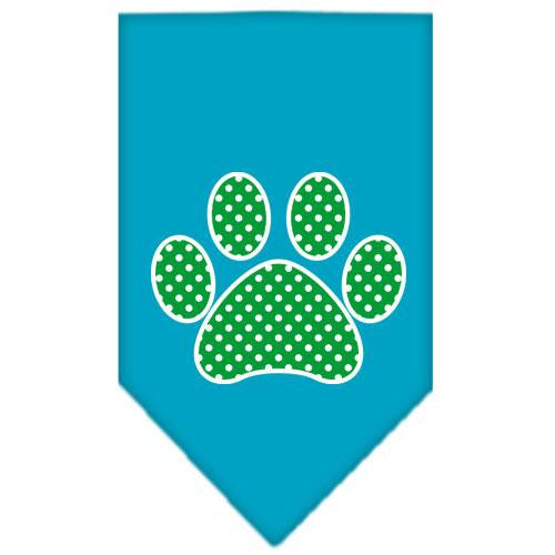 Green Swiss Dot Paw Screen Print Bandana Turquoise Large