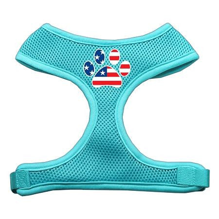 Paw Flag USA Screen Print Soft Mesh Harness Aqua Large