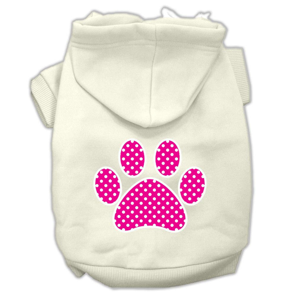 Pink Swiss Dot Paw Screen Print Pet Hoodies Cream Size XL (16)