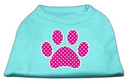 Pink Swiss Dot Paw Screen Print Shirt Aqua XXL (18)