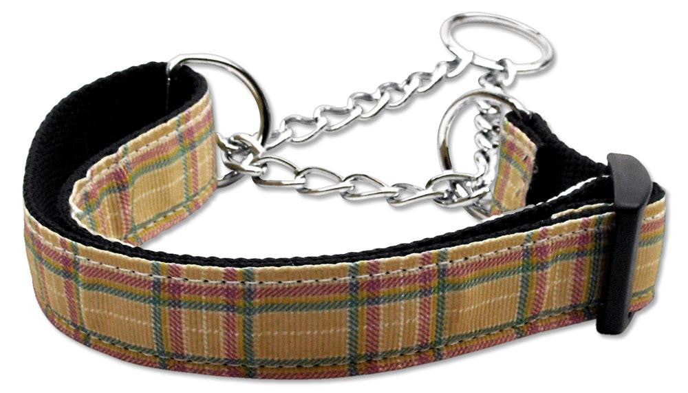 Plaid Nylon Collar  Martingale Khaki Medium