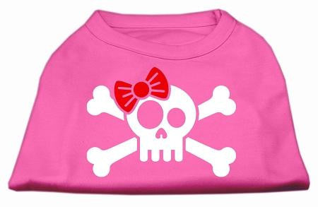 Skull Crossbone Bow Screen Print Shirt Bright Pink XXL (18)
