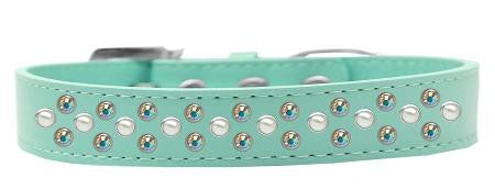 Sprinkles Dog Collar Pearl and AB Crystals Size 12 Aqua