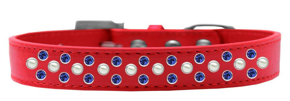 Sprinkles Dog Collar Pearl and Blue Crystals Size 16 Red