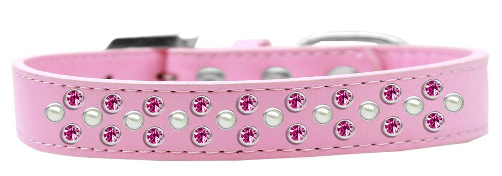 Sprinkles Dog Collar Pearl and Bright Pink Crystals Size 16 Light Pink