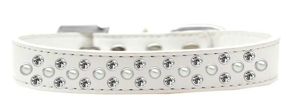 Sprinkles Dog Collar Pearl and Clear Crystals Size 16 White