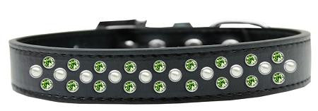 Sprinkles Dog Collar Pearl and Lime Green Crystals Size 14 Black