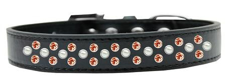 Sprinkles Dog Collar Pearl and Orange Crystals Size 14 Black
