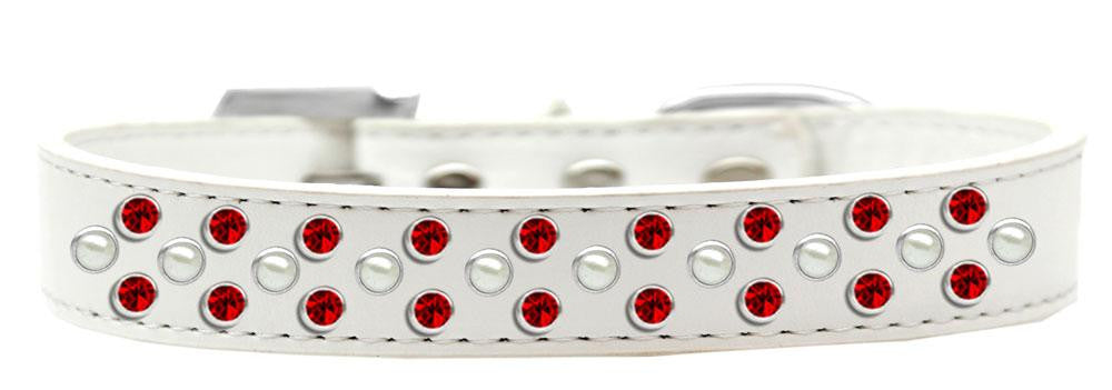 Sprinkles Dog Collar Pearl and Red Crystals Size 16 White