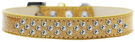 3/4" wide collar adorned with 2 sprinkled rows of rhinestones and a rhinestone buckle.