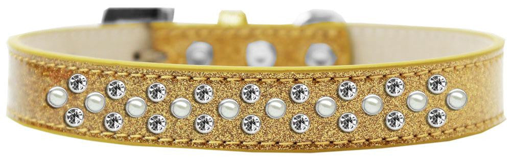 Sprinkles Ice Cream Dog Collar Pearl and Clear Crystals Size 14 Gold