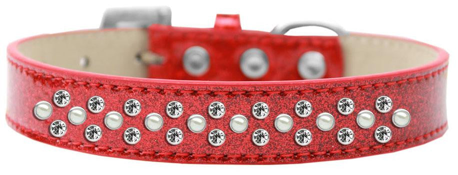Sprinkles Ice Cream Dog Collar Pearl and Clear Crystals Size 16 Red