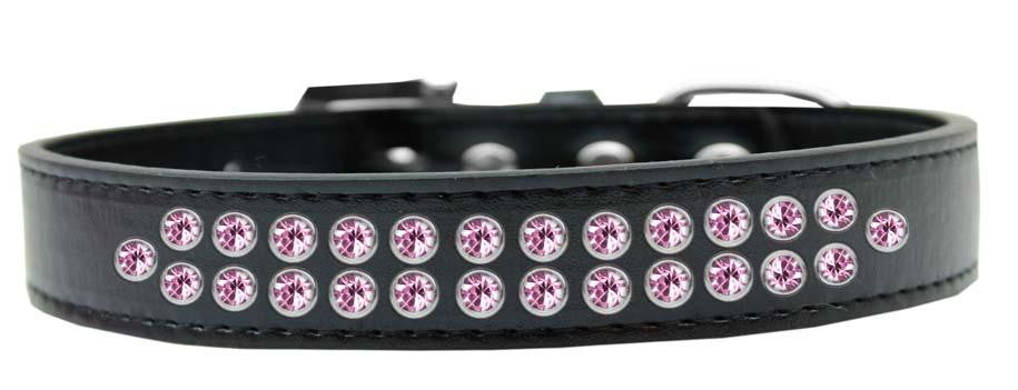 Two Row Light Pink Crystal Size 14 Black Dog Collar