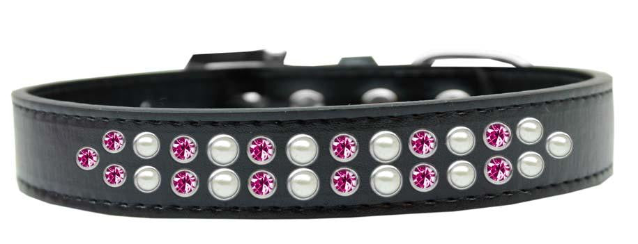 Two Row Pearl and Pink Crystal Size 18 Black Dog Collar