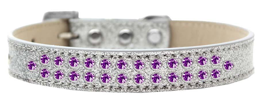 Two Row Purple Crystal Size 12 Silver Ice Cream Dog Collar