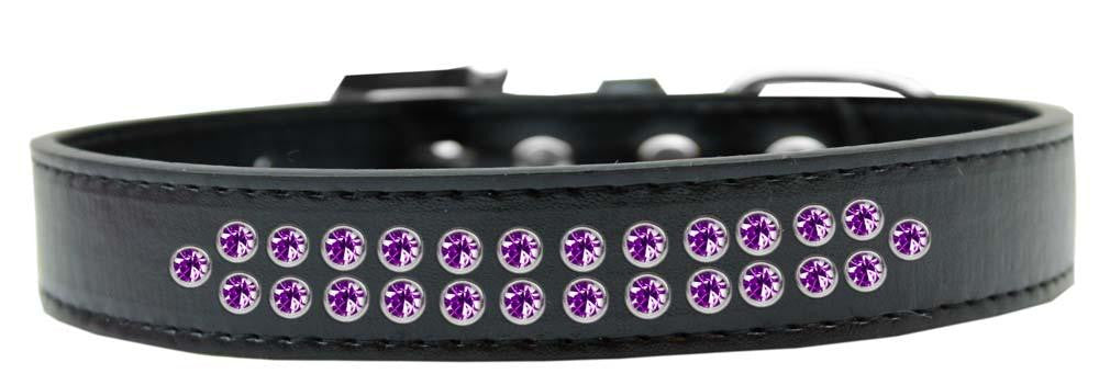 Two Row Purple Crystal Size 16 Black Dog Collar