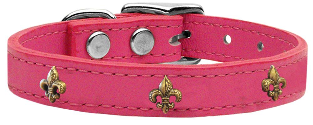 Bronze Fleur De Lis Widget Genuine Leather Dog Collar Pink 18