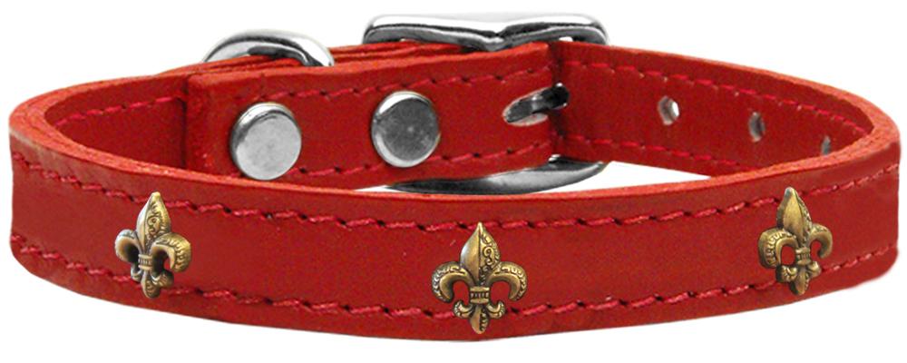 Bronze Fleur De Lis Widget Genuine Leather Dog Collar Red 20