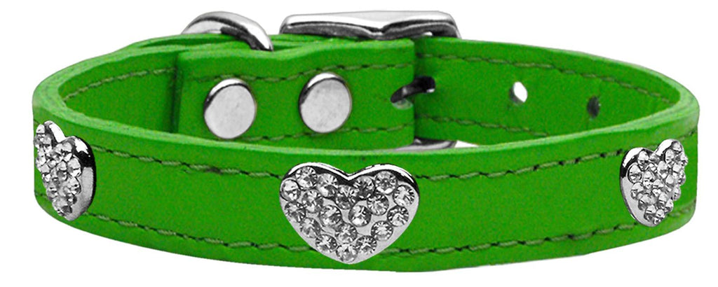 Crystal Heart Genuine Leather Dog Collar Emerald Green 20