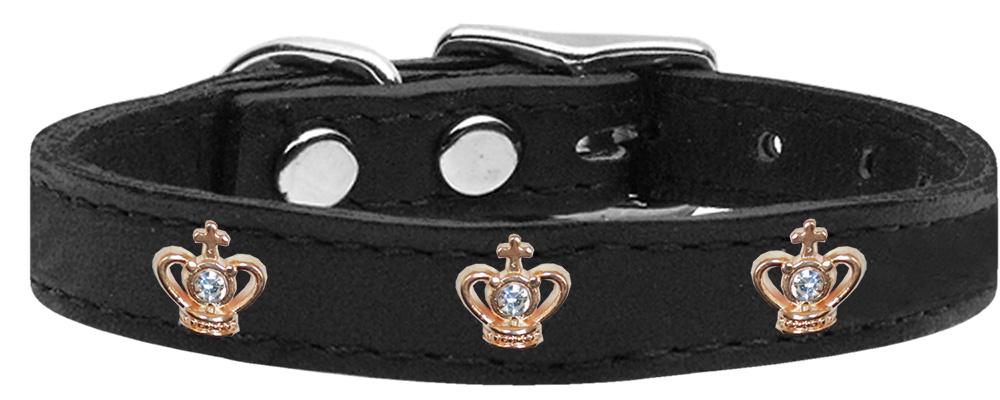 Gold Crown Widget Genuine Leather Dog Collar Black 12