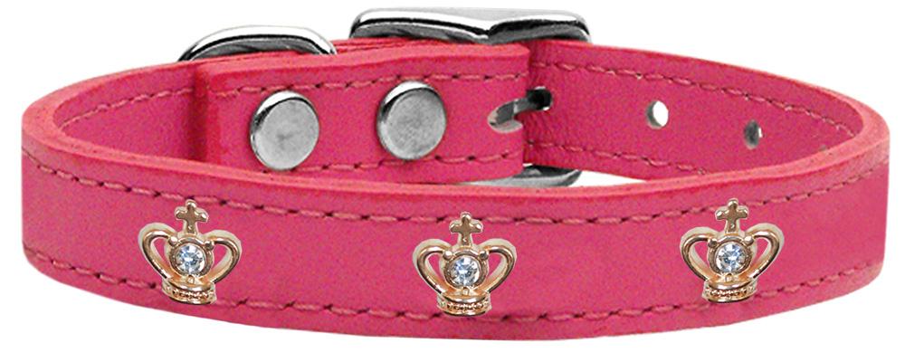 Gold Crown Widget Genuine Leather Dog Collar Pink 16