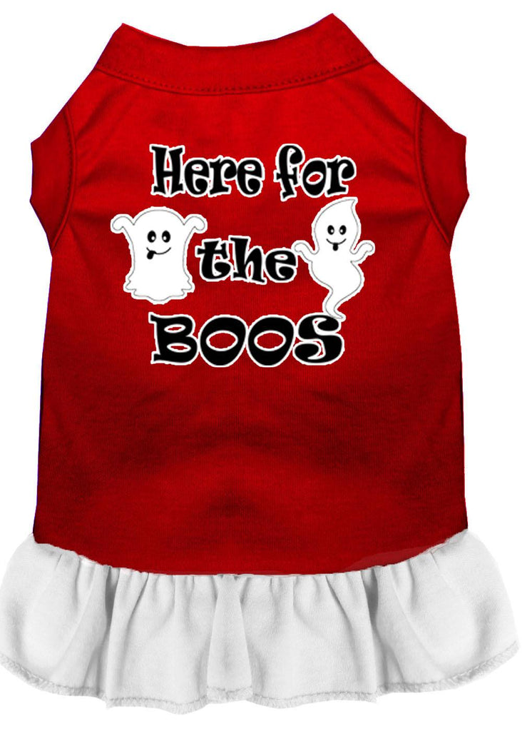 Here For The Boos Screen Print Dog Dress Red With White Xl (16)