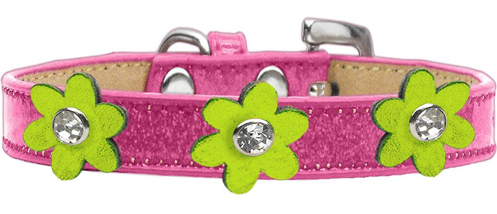 Metallic Flower Ice Cream Collar Pink With Metallic Lime Green Flowers Size 18