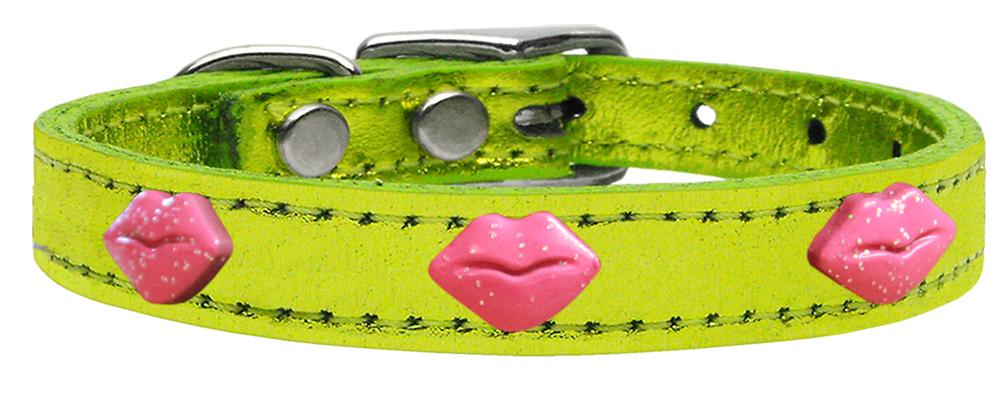 Pink Glitter Lips Widget Genuine Metallic Leather Dog Collar Lime Green 10