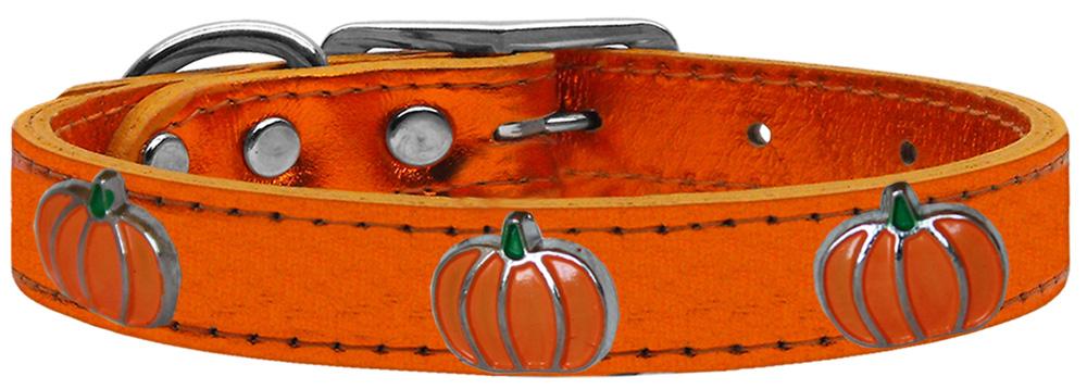 Pumpkin Widget Genuine Metallic Leather Dog Collar Orange 16