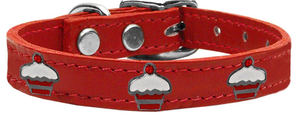 Red Cupcake Widget Genuine Leather Dog Collar Red 18