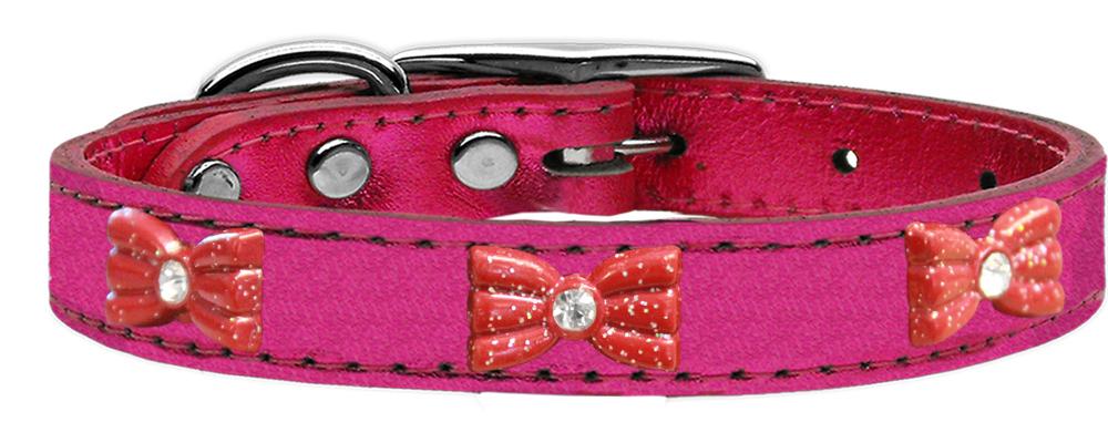 Red Glitter Bow Widget Genuine Metallic Leather Dog Collar Pink 20