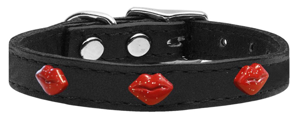 Red Glitter Lips Widget Genuine Leather Dog Collar Black 16