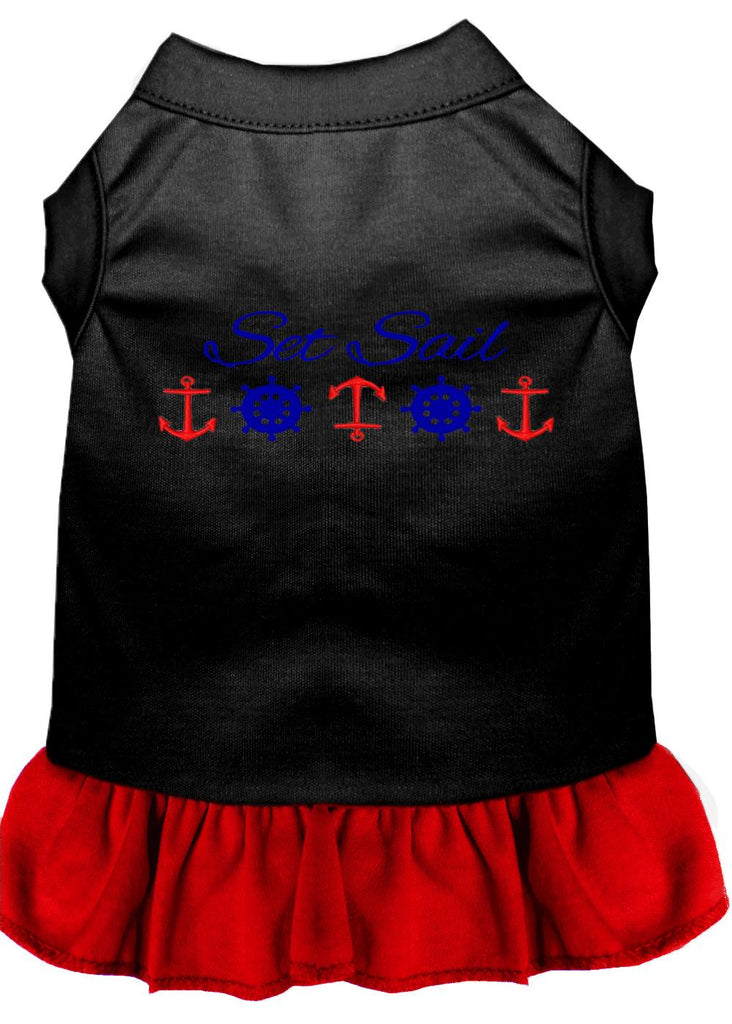 Set Sail Embroidered Dog Dress Black With Red Med (12)