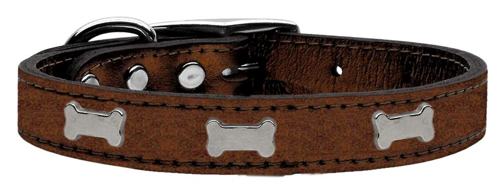 Silver Bone Widget Genuine Metallic Leather Dog Collar Bronze 14