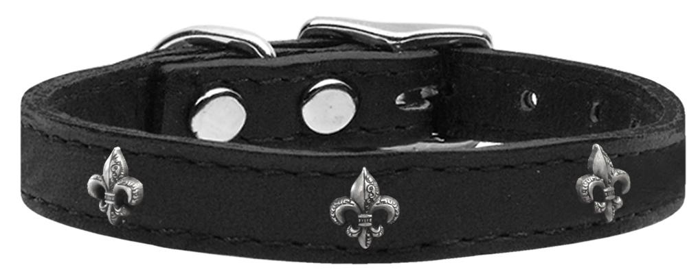 Silver Fleur De Lis Widget Genuine Leather Dog Collar Black 26