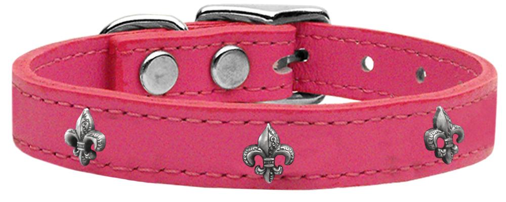 Silver Fleur De Lis Widget Genuine Leather Dog Collar Pink 24