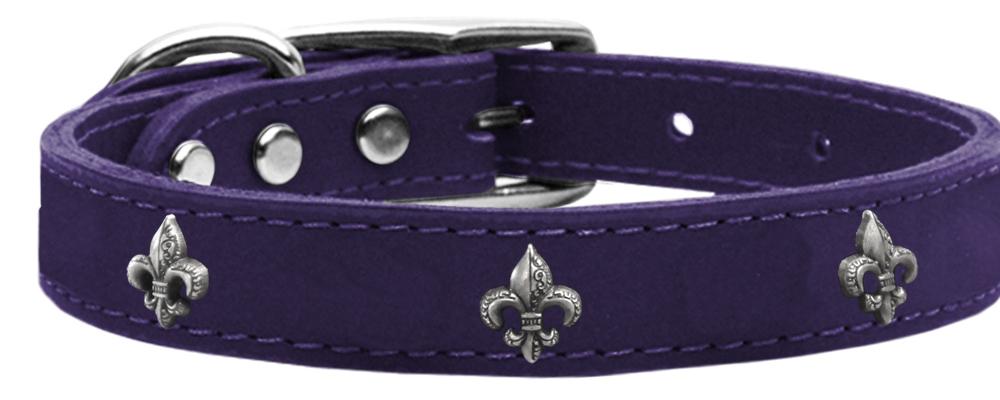 Silver Fleur De Lis Widget Genuine Leather Dog Collar Purple 26