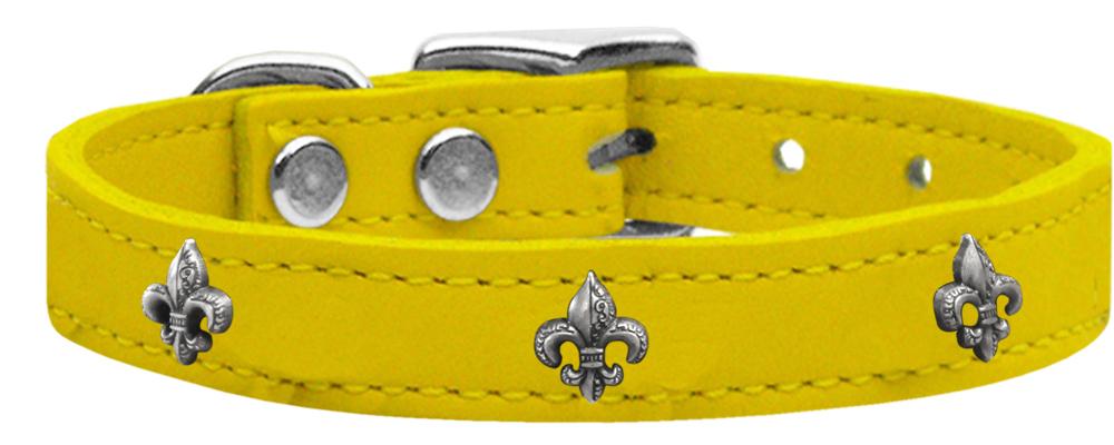 Silver Fleur De Lis Widget Genuine Leather Dog Collar Yellow 24