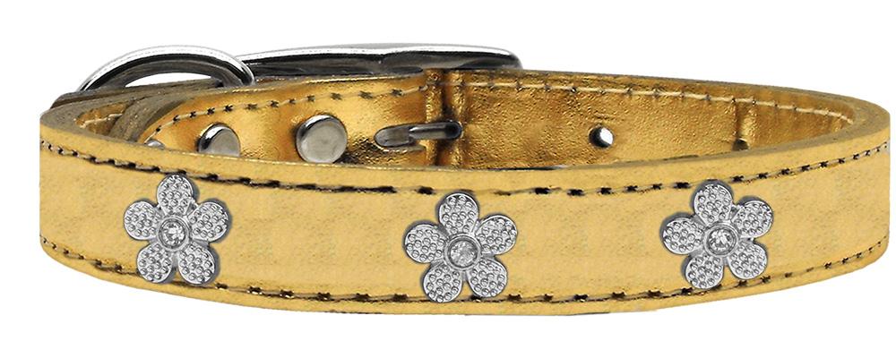 Silver Flower Widget Genuine Metallic Leather Dog Collar Gold 18