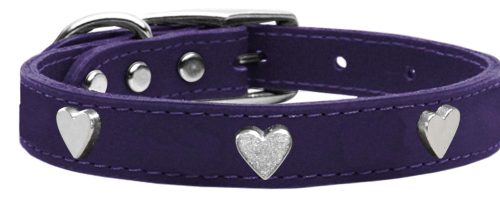 Silver Heart Widget Genuine Leather Dog Collar Purple 24