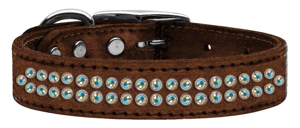 3/4" wide metallic genuine leather adorned with 2 rows of premium rim set Aurora Borealis crystals.
