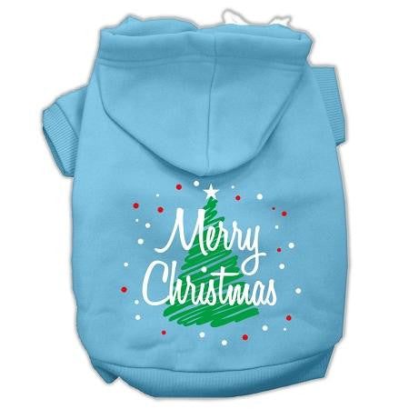 Scribbled Merry Christmas Screenprint Pet Hoodies Baby Blue Size S (10)