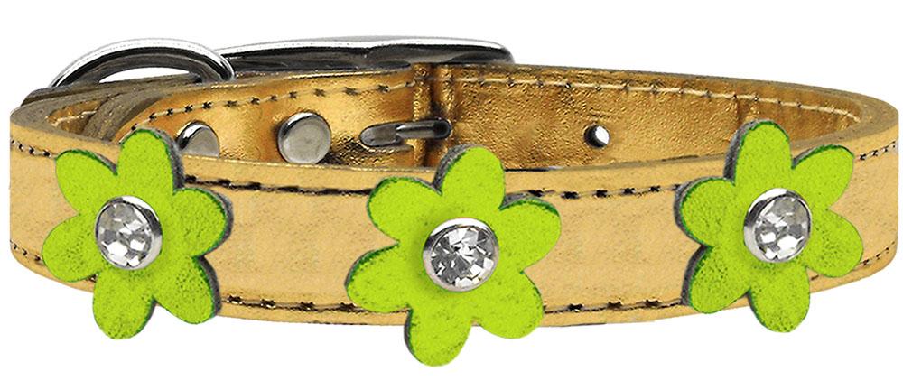 Metallic Flower Leather Collar Gold With Metallic Lime Green Flowers Size 22