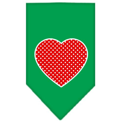 Red Swiss Dot Heart Screen Print Bandana Emerald Green Small