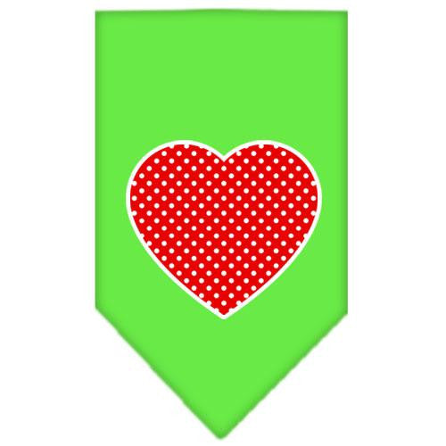 Red Swiss Dot Heart Screen Print Bandana Lime Green Small