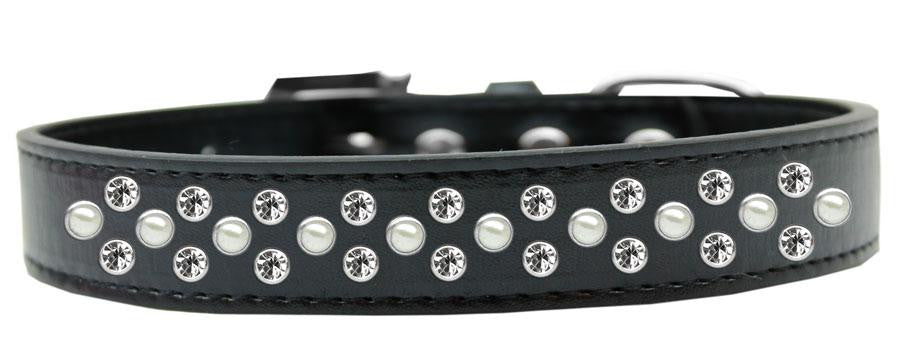 Sprinkles Dog Collar Pearl and Clear Crystals Size 14 Black